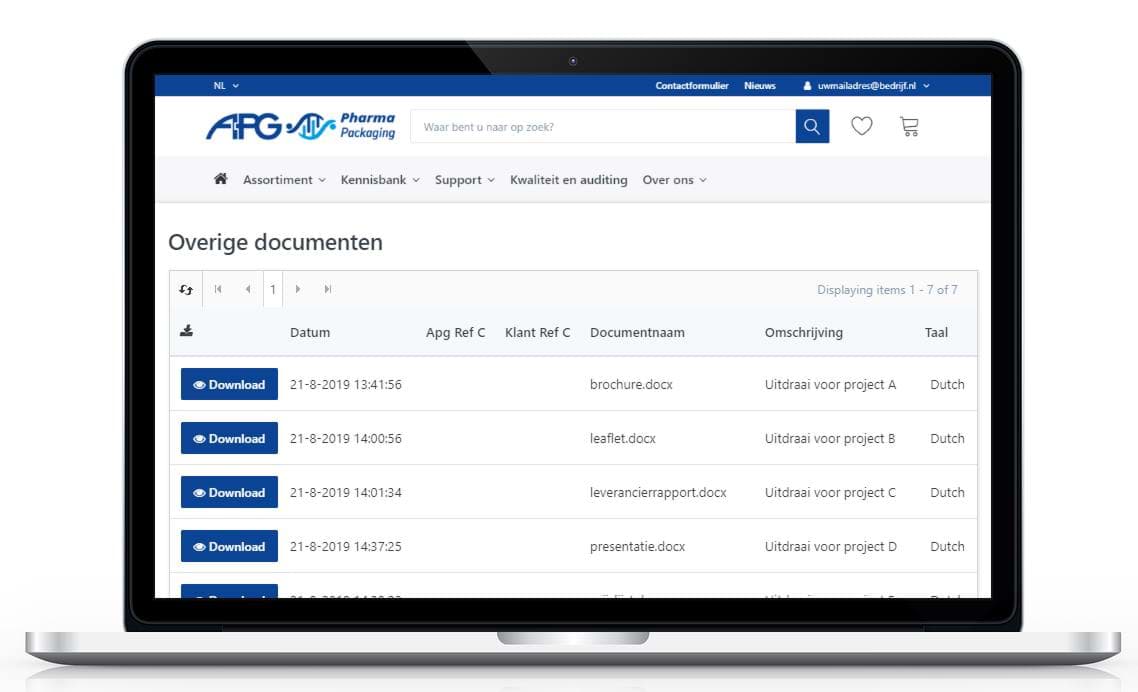 • Download uw offertes, orderbevestigingen, facturen, retourorders en creditfacturen